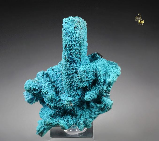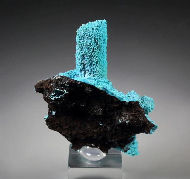 Beautiful specimen of colorful Chrysocolla pseudomorph after Azurite, after Malachite from Lupoto mine, Katanga, Congo - Kinshasa. It displays rich turquoise blue blades covered with Chrysocolla pseudomorph after what were Azurite crystals pseudomorphed to Malachite and after to Chrysocolla. This is probably a double or triple pseudomorph. In excellent condition – some small contacts. On acrylic base., Marvelous pseudomorph!Data last checked on 25th Aug 2021 - specimen may no longer be available