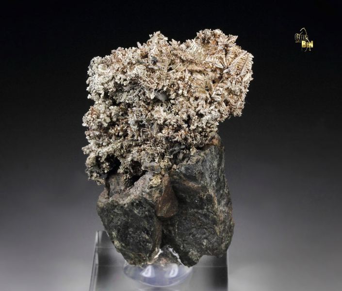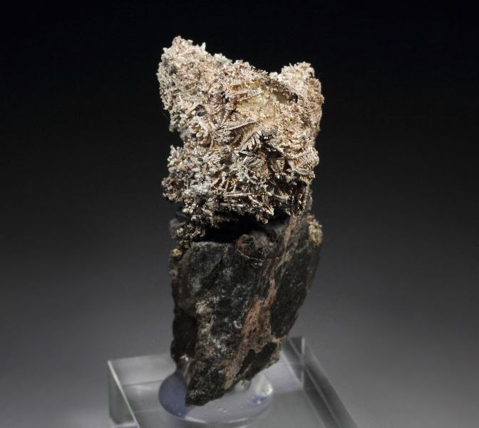 Gorgeous specimen of herringbone-patterned, spinel-twinned, native Silver from El Bonanza Mine, Canada. It has lovely brightness and fine spear shaped crystals, attractively growing in a dense cluster, over the base. It has very aesthetic display all over 360 degree. In superb condition. On acrylic base., Superb!Data last checked on 25th Aug 2021 - specimen may no longer be available