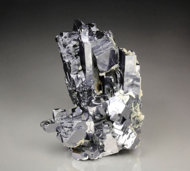 Superb skeletal geometry for these Galena crystals from Laki, Bulgaria. This specimen is not from the famous Madan mining area. It displays stacked and aligned Galenas overgrowing each other. Excellent parallel growth of cubes and elongated tetragonal prisms on different axes. They consecutively grow one atop another forming amazing skeletal structure. The crystals are mirror lustrous, shiny and light reflective. Some gas bubble deformations are seen on the faces. In excellent condition – some small contacts., Bedazzling!Data last checked on 25th Aug 2021 - specimen may no longer be available