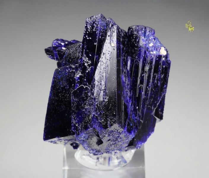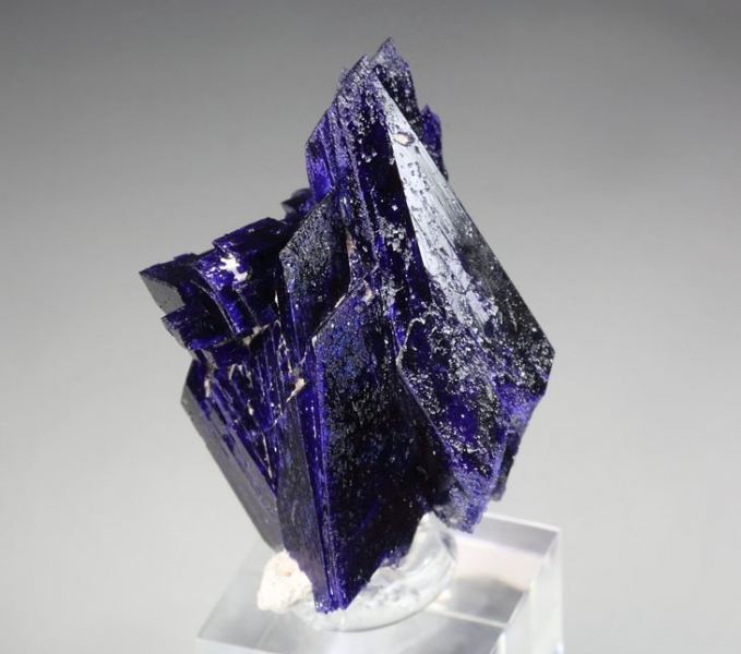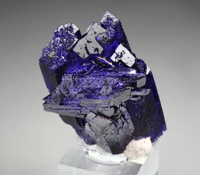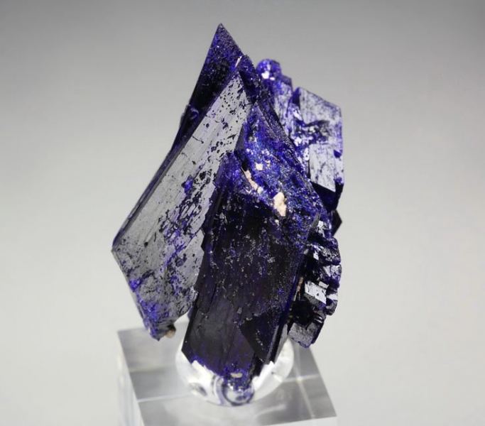 Superb Azurite specimen displaying marvelous doubly terminated crystals growing in a beautiful cluster from Kerrouchene, Morocco. Featuring up to 25mm tabular crystals. The piece has very elegant posture and sharp Azurite blades with strong luster. The color ranges from black-blue to some electric royal-blue. The crystals show penetration twinning. Complete all over 360 degree. In excellent condition – some natural imperfections. On acrylic base., Fascinating Azurite!Data last checked on 25th Aug 2021 - specimen may no longer be available