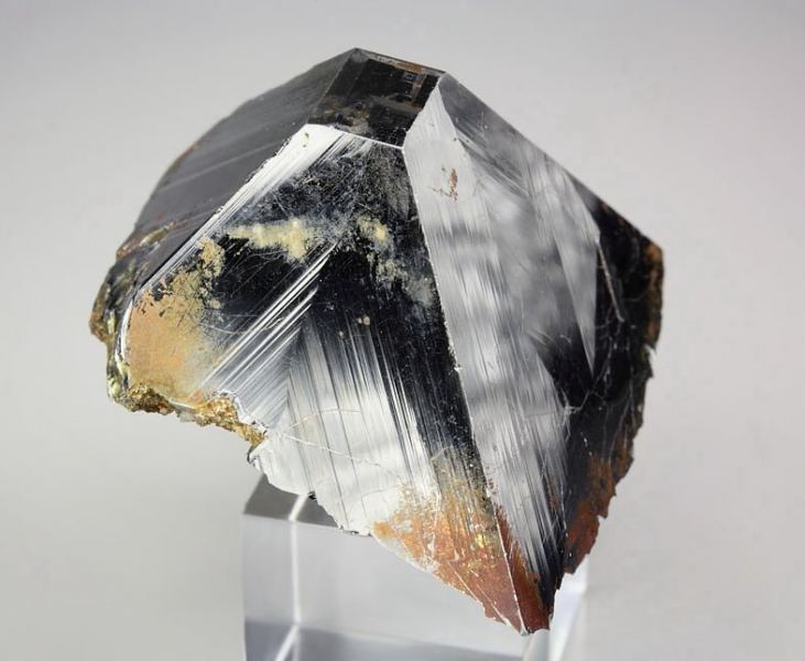 Killer 34mm Carrollite crystal with razor sharp pyramidal habit from Kambove, Katanga Copper Crescent, Congo Kinshasa. It is with perfect shape, metallic, mirror lustrous and shiny with great brilliance. It is completely crystallized. In very good condition – some small nicks and base contacts. On acrylic base., Top quality Carrollite!Data last checked on 25th Aug 2021 - specimen may no longer be available