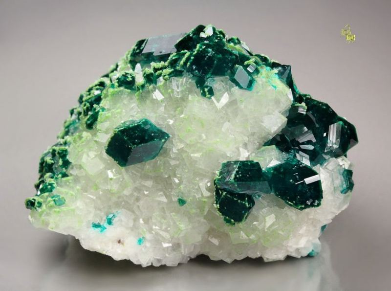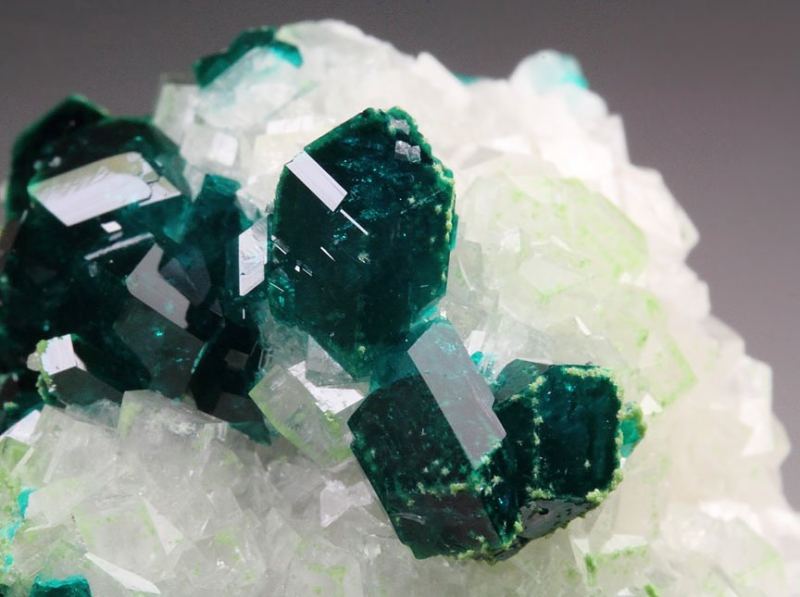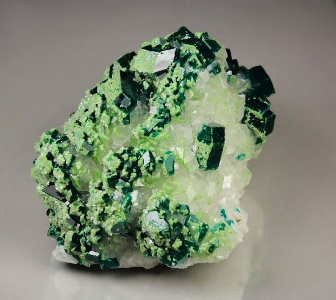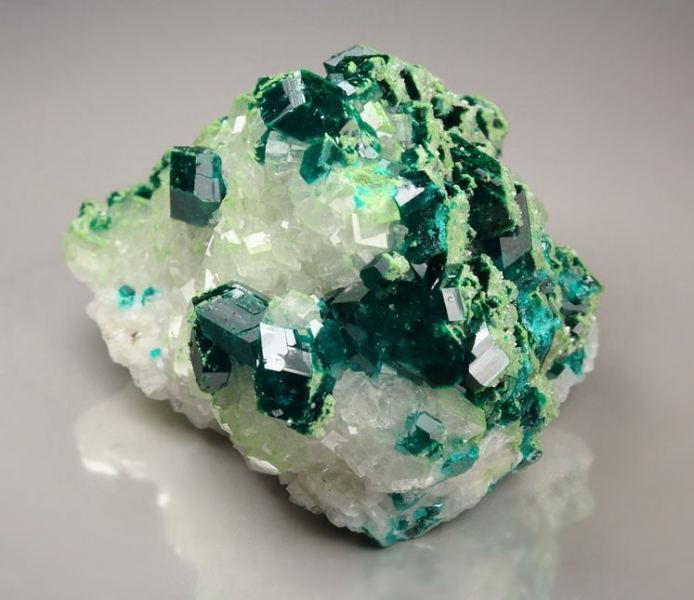 Dioptase on Calcite (classic material)