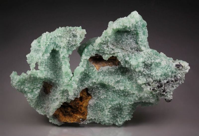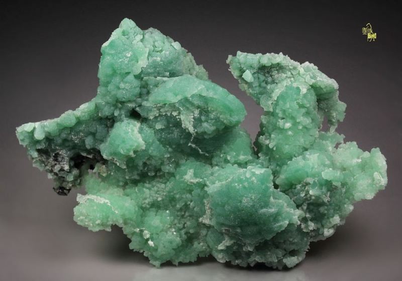 Excellent for the locality specimen of Smithsonite from the famous Lavrion District, Greece. The Smithsonite forms a botryoidal thin crust with pleasing green color. On the back side are seen crystals. Some contacts and natural cracks., Superb!Data last checked on 25th Aug 2021 - specimen may no longer be available