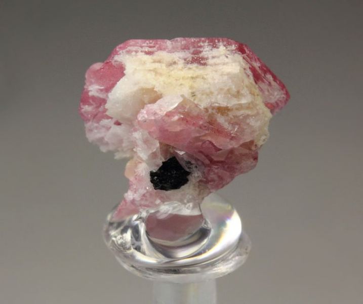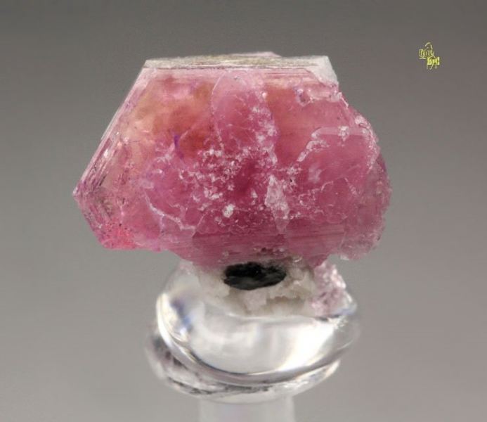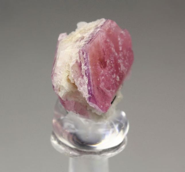 Wonderful rare Pezzottaite crystal from the type locality Sakavalana mine, Madagascar, It is 2003 identified a new species of beryl named after Dr. Federico Pezzotta, Italy. The Pezzottaite has bright pinkish-red color due to Cesium. The crystal is 10mm, gemmy with good luster. Some contacts. On acrylic base., Splendid!Data last checked on 25th Aug 2021 - specimen may no longer be available