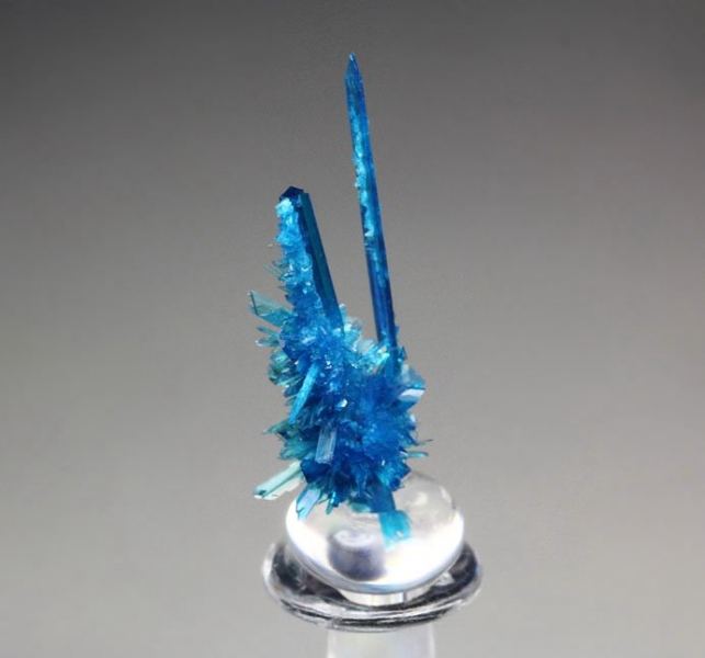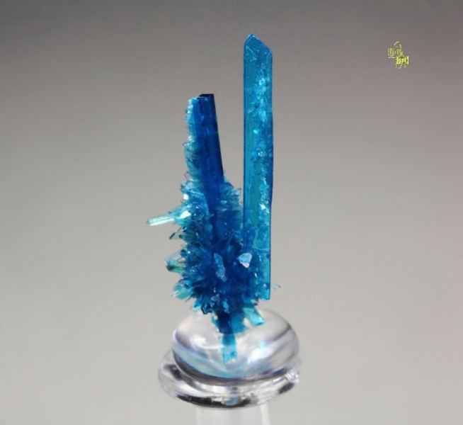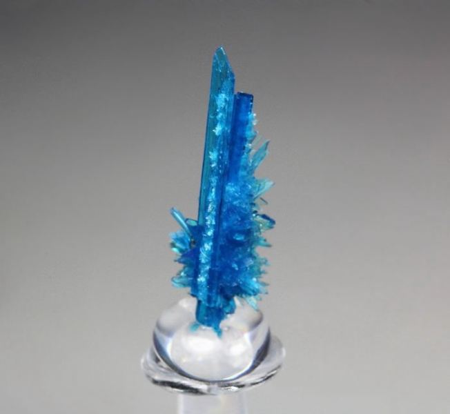 Gorgeous specimen of Pentagonite crystals from Wagholi, Pune District, India. It displays a beautiful cluster of delicate blades. The specimen has very elegant posture with well defined crystals. Brilliant and lustrous. They are transparent and gemmy with fabulous and very deep neon blue color. Some damages. On acrylic base., Superb!Data last checked on 25th Aug 2021 - specimen may no longer be available