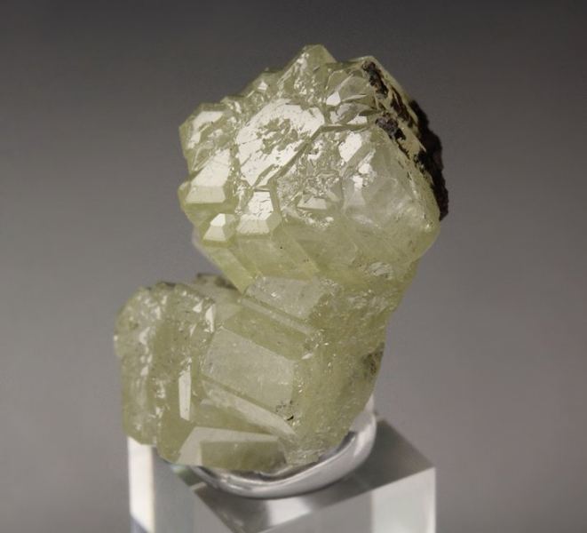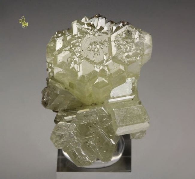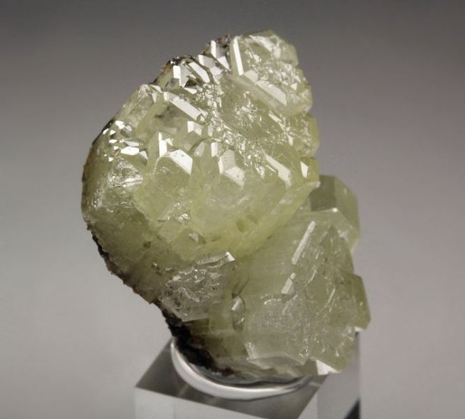 Splendid specimen of gemmy Mimetite crystals from the famous Tsumeb mine, Namibia. It comes from the collection of Tony Smith with a label. It is very pleasing specimen of flat terminated prismatic crystals. The Mimetites are very well shaped with pleasing cream-yellow color. They have strong luster and fresh appearance. The quality is very good – the crystals are translucent to transparent and gemmy. In very good condition – some side contacts. On acrylic base., Fantastic!Data last checked on 25th Aug 2021 - specimen may no longer be available