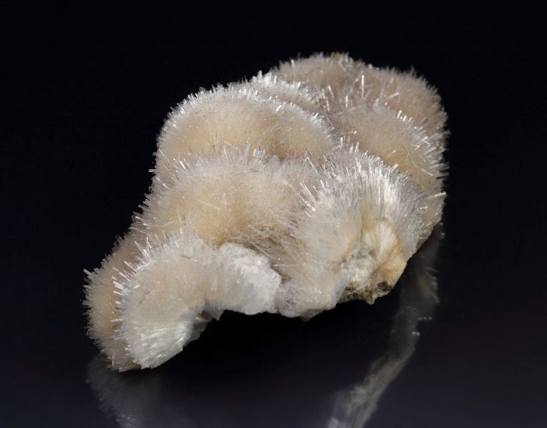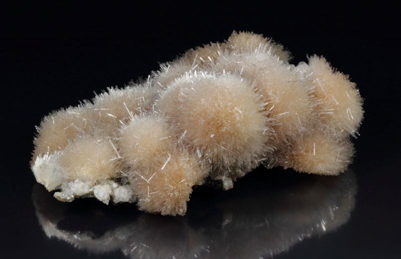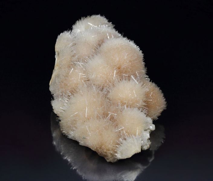 Beautiful specimen of Natrolite and Analcime from Wasson Bluff, Nova Scotia, Canada. The Natrolite forms splendid radial sprays of colorless needle crystals. They are very delicate, translucent to transparent at the top, with sharp well defined shape, fine shimmering and pearly luster. Among them grow small Analcime crystals. They are well shaped and lustrous. Due to the base the specimen has cream coloration. In excellent condition – some outside edge contacts., Mesmerizing!Data last checked on 25th Aug 2021 - specimen may no longer be available