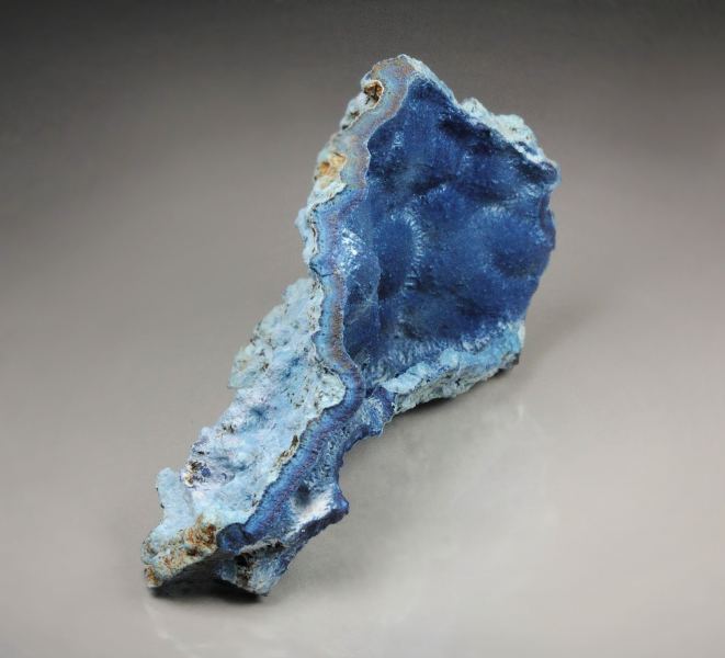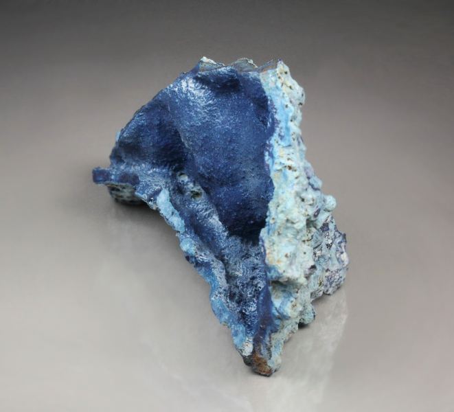 Beautiful vug of botryoidal Shattuckite with blue color from Tantara Mine, Congo Kinshasa. The secondary Copper silicate Shattuckite forms a delicate curved crust with saturated blue color and velvet appearance. It displays attractively all over 360 degree. In superb condition., Marvelous!Data last checked on 25th Aug 2021 - specimen may no longer be available