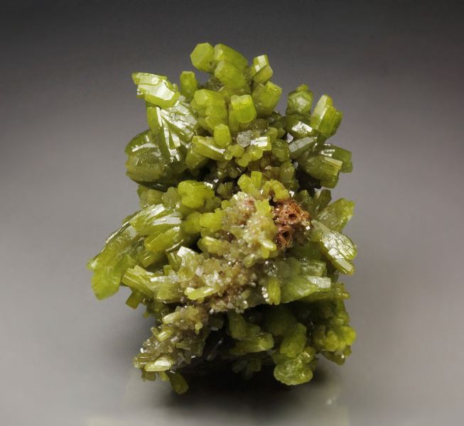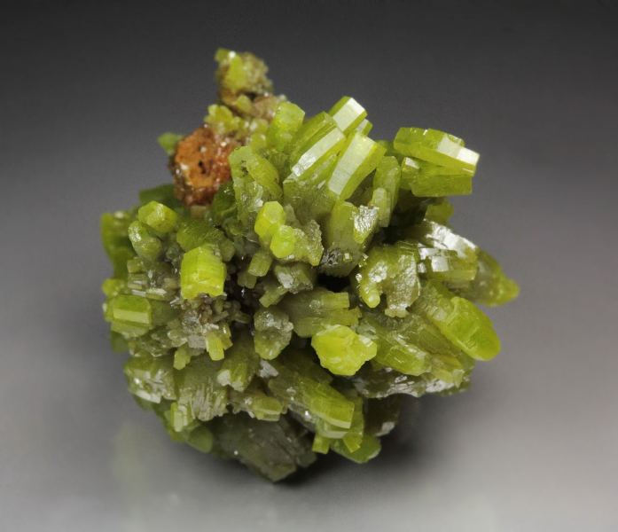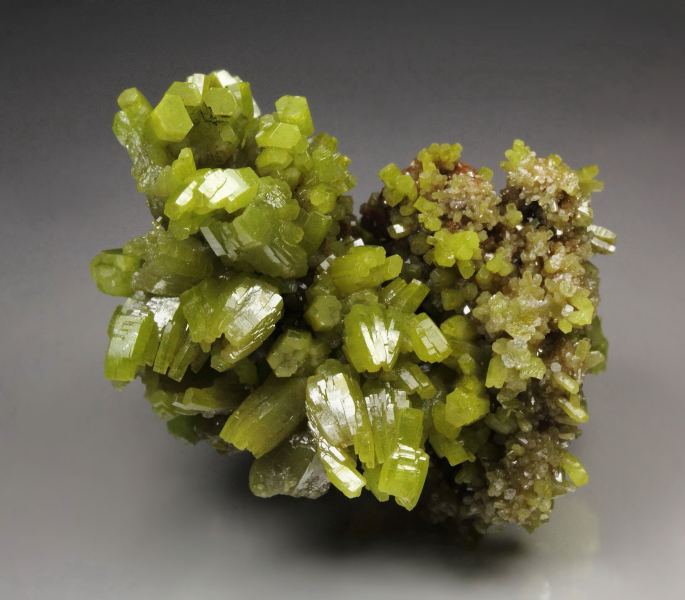 Fascinating specimen of Pyromorphite crystals from the famous Daoping Mine, China. It displays crystals growing in attractive cluster. They form groups and sprays of hexagonal crystals with vivid apple-green color, and some yellow nuances. They have strong luster and fresh appearance. Some Pyromorphites are stepped hoppers. The specimen has beautiful display all over. It is almost a complete floater. In good condition – some small damages., Marvelous!Data last checked on 25th Aug 2021 - specimen may no longer be available
