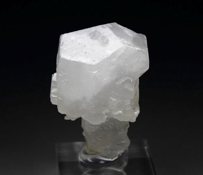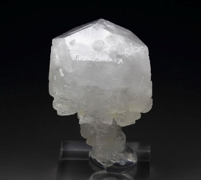 Unusual scepter Calcite crystal from Charcas, San Luis Potosi, Mexico. It is well shaped 32 mm crystal. The Calcite is colorless, translucent and lustrous. The scepter is very neat. It is fluorescent. Displays all over 360 degree. In good condition – some small nicks and contacts. On acrylic base., Original scepter Calcite!Data last checked on 25th Aug 2021 - specimen may no longer be available