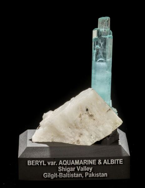 Stepped Aquamarine on Albite from Shigar Valley, Pakistan (Ref: OU20-BIGAQ)