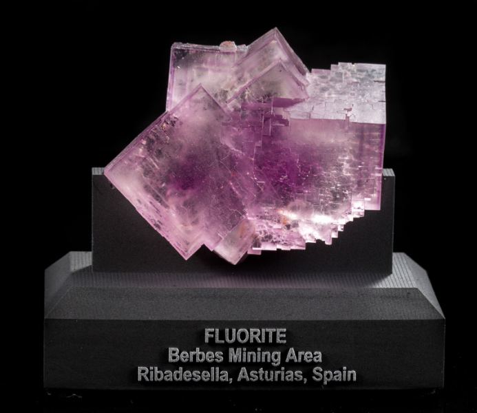 Here is an absolutely flawless purple phantom fluorite float specimen from Berbes, Spain. This is a complete floater with no contact point anywhere, and no damage whatsoever. The backside is fully re-crystallized. There are actually about 6 fluorite cubes in this cluster, and they all have a purple core with a clear outer zone. Data last checked on 14th Sep 2021 - specimen may no longer be available