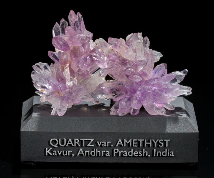 A stunningly beautiful and aesthetic amethyst flower specimen from India. It is actually a group of several flowers with the most well-defined one on the right. The luster, clarify, and condition are all excellent.Data last checked on 14th Sep 2021 - specimen may no longer be available