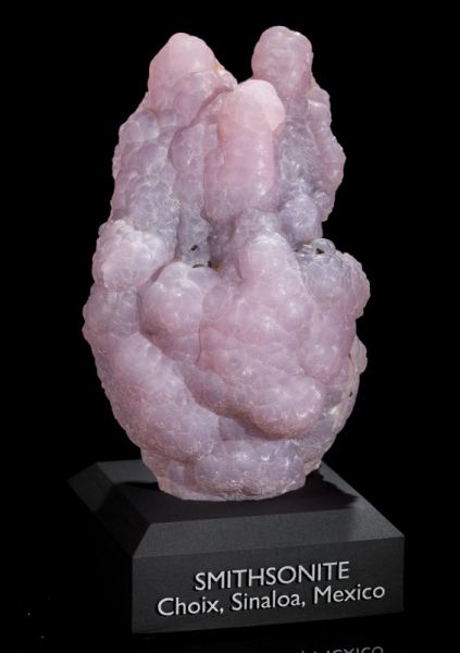 A wonderful pink/purple/lavendar Smithsonite from Mexico. This large specimen is covered in botryoidal crystals and has a stalactitic form. Very clean condition with no damage or dings to the face at all. Data last checked on 14th Sep 2021 - specimen may no longer be available