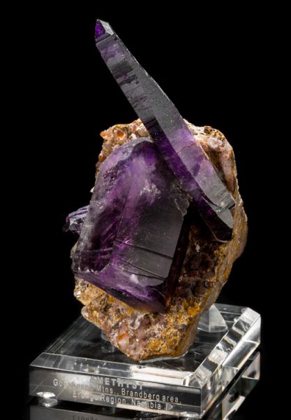 This is an absolutely outstanding and unique amethyst specimen from Namibia! The aesthetics are fantastic with 3 primary amethyst crystals, each of whic his a deep "grape jelly" purple color. On the left side is the smallest of the 3 primary crystals, and it's actually a double-sidecar crystal with two terminations. In the middle is the beast - a bit fat amethyst crystal that measures 5.2cm in diameter! Then, on the right side is a beautiful 13.7cm long, double-terminated amethyst crystal that looks amazing shooting up from the matrix. The matrix itself has numerous much smaller quartz/amethyst crystals growing on it, and much of it has a light druzy coating. Data last checked on 14th Sep 2021 - specimen may no longer be available