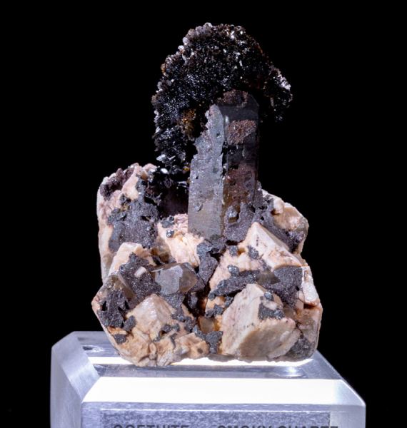Goethite Spray on Smoky Quartz & Microline Mineral Specimen from Colorado (Ref: DCO18-GOSMOK)