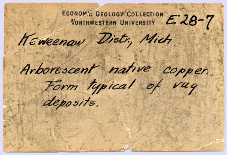 Excellent crystallization clearly showing the faces of the dodecahedron, even considering the typical deformation and elongation of crystals.The sample is from an old collection of Northwestern University and well include the label.Keweenaw County, Michigan USA