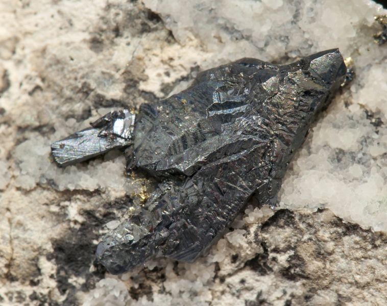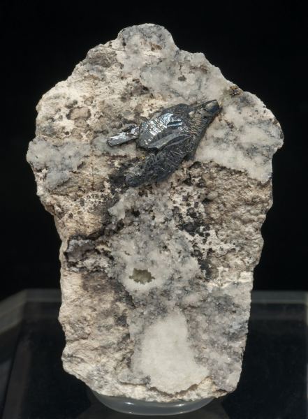 Single crystal, on a rocky matrix, of this rare silver sulphosalt. It has very well defined faces and edges and an unusually intense luster.Mina Rosebud, Rosebud District, Pershing County, Nevada USA