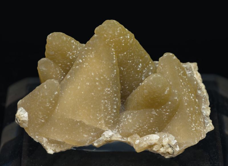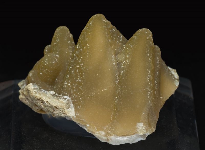 Smithsonite pseudomorphic growths after scalenohedral Calcite crystals. The specimen shows growth of a successive series of layers that indicate that the Calcite was partially replaced in a first phase and finally ended up being totally replaced by Smithsonite.San Antonio Mine (San Antonio el Grande Mine), level 8, East Camp, Santa Eulalia District, Municipio Aquiles Serdán, Chihuahua Mexico (04/2013)