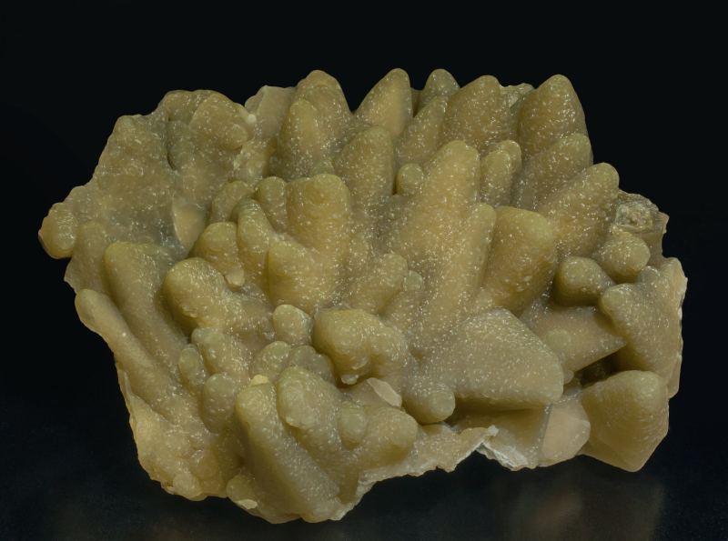 Aggregate of Smithsonite crystals replacing Calcite. They show successive replacement shells indicating that the Calcite was only partially replaced during a first phase, and later completely replaced by Smithsonite. We'll send a copy of the analysis of the Smithsonite to the buyer.San Antonio Mine (San Antonio el Grande Mine), level 8, East Camp, Santa Eulalia District, Municipio Aquiles Serdán, Chihuahua Mexico (04/2013)