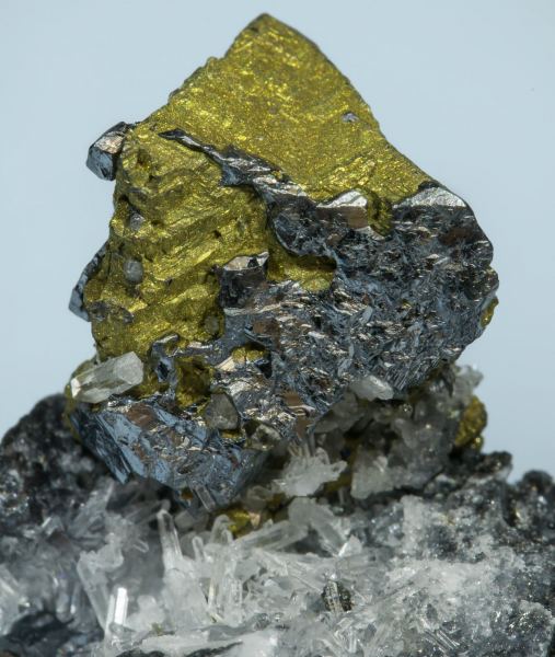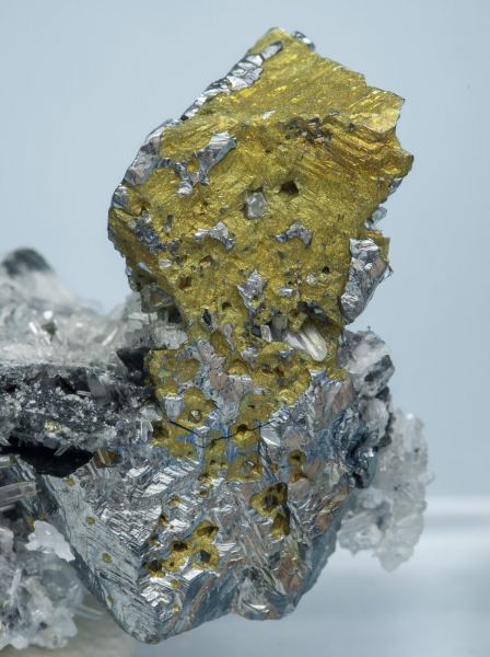 A novelty at Tucson 2018. Very aerial growth of very sharp octahedral Acanthite crystals with epigenic Chalcopyrite and on matrix with Quartz. The sample has been analyzed and well send a copy of its analysis to the buyer.San José Mine, San José del Progreso, Municipìo San José del Progreso, Ocotlán District, Valles Centrales Region, Oaxaca Mexico (01/2018)