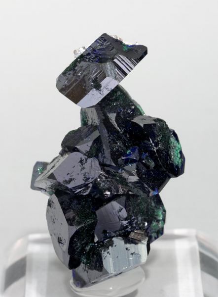 Very aerial group of complex crystals that have very well defined faces and edges. They are translucent and have an extraordinary deep blue color (electric blue) typical of the best samples from Milpillas. They have vivid reflections and transparencies under a strong light.Milpillas Mine, level 1100, Cuitaca, Municipio Santa Cruz, Sonora Mexico (10/2011)