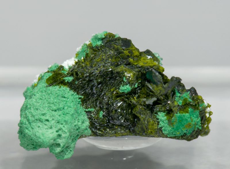 Volborthite was the new sensation in the Tucson Show 2015 as well as in Ste. Marie, but the number of them seems to be somewhat limited.The Milpillas ones are without doubt the world's best for their luster, shape, good contrast with the white clay matrix and the crystal size of the best ones, so all together these are a new standard for this species. We are proud to offer this one which has a very reasonable balance quality / price.