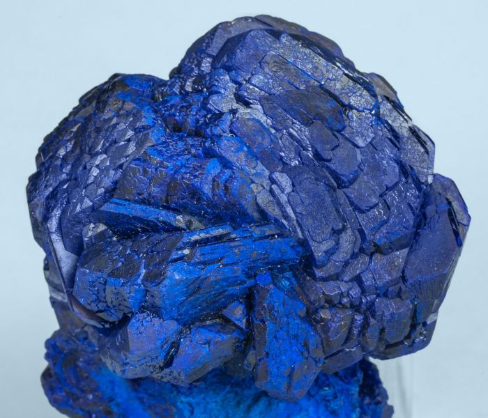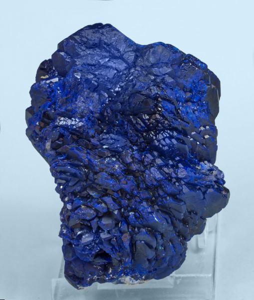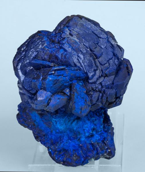 This floater specimen has rosette growths of Azurite crystals with very well defined crystal forms, marked polycrystalline growths and a very intense and vivid color. The high-quality specimen is among the best known for this classic world Azurite locality, and was found by Jimmy Vacek in 1986.Concepción del Oro, Municipio Concepción del Oro, Zacatecas Mexico (1986)