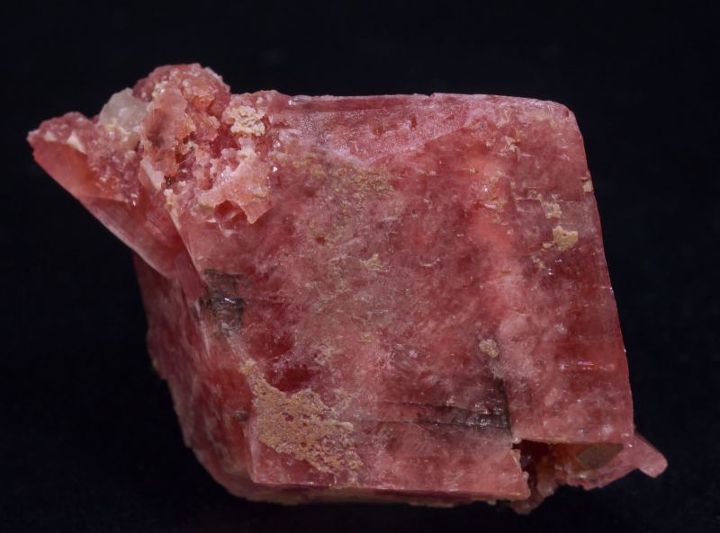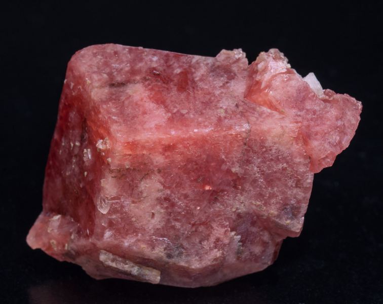 Aggregate of very sharp intergrown rhombohedral crystals, one of them clearly dominant and complete. They are bright and have a very intense deep color. This morphology, so well defined, is unusual with samples from Mount-Saint- Hilaire.The specimen has been reviewed, photographed and published as a new discovery in the magazine Mineral Up on page 59 of the 2016/02 edition and in the magazine extraLAPIS on page 9, number 56, "Rhodochrosit"