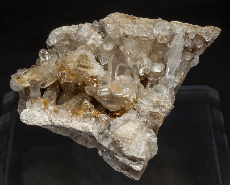 From a find between 2008 and 2011 by local prospectors on a not well known, until today, mineral locality. Group of crystals, one of them clearly dominant and well centered on the sample so, it is very esthetic. These crystals, twinned with the very well defined japan law twin, have very sharp crystalline forms and are transparent, bright, colorless and with reddish shades in some areas due to iron oxide inclusions.Harrison Lake, Chilliwack, Regional District Fraser Valley, British Columbia Canada (2008-2011)