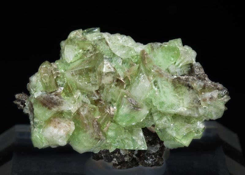 Aggregate of very sharp and very well defined Augelite crystals, between translucent and transparent, with a nice green color zoned by brown Siderite inclusions and on matrix, with Siderite.Kulan Camp area, Rapid Creek area, Dawson mining district, Yukon Territory Canada (1998)