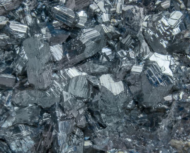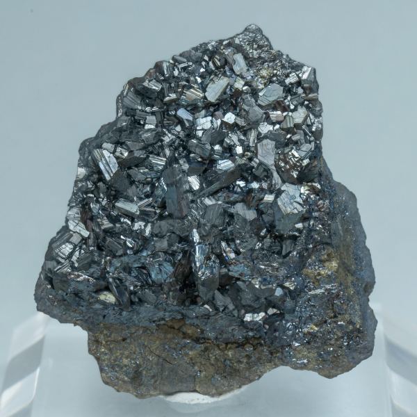 Very sharp Chalcocite crystals that form hexagonal cyclic twins with well defined faces and edges, flattened, bright, on matrix with crystalline Pyrite inclusions. The specimen has been analyzed and we will send a copy of the analysis to the buyer.Las Cruces Mine, Gerena-Guillena-Salteras, Comarca Sierra Norte, Seville, Andalusia Spain