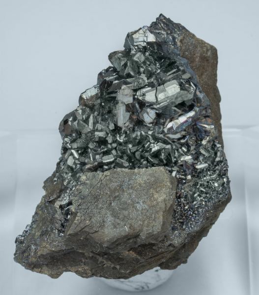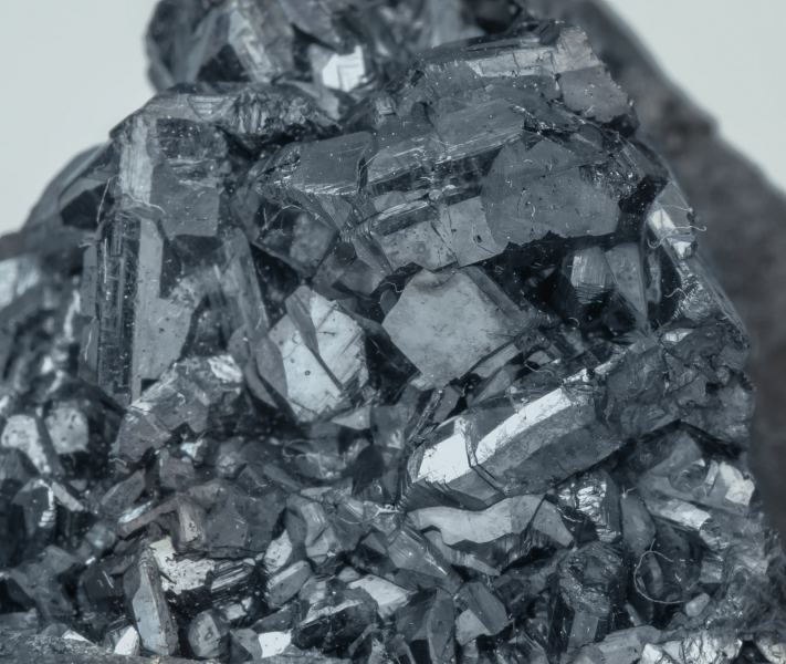 Very sharp Chalcocite crystals, twinned, with well defined faces and edges, flattened, shiny, and on matrix. The specimen has been analyzed and we will send a copy of the analysis to the buyer.Las Cruces Mine, Gerena-Guillena-Salteras, Comarca Sierra Norte, Seville, Andalusia Spain