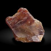 A complex crystal with curvatures on its faces and edges. It is transparent and has an excellent deep honey color. The back side shows exfoliated surfaces.Las Mánforas Mine, Áliva mining area, Camaleño, Comarca Liébana, Cantabria Spain