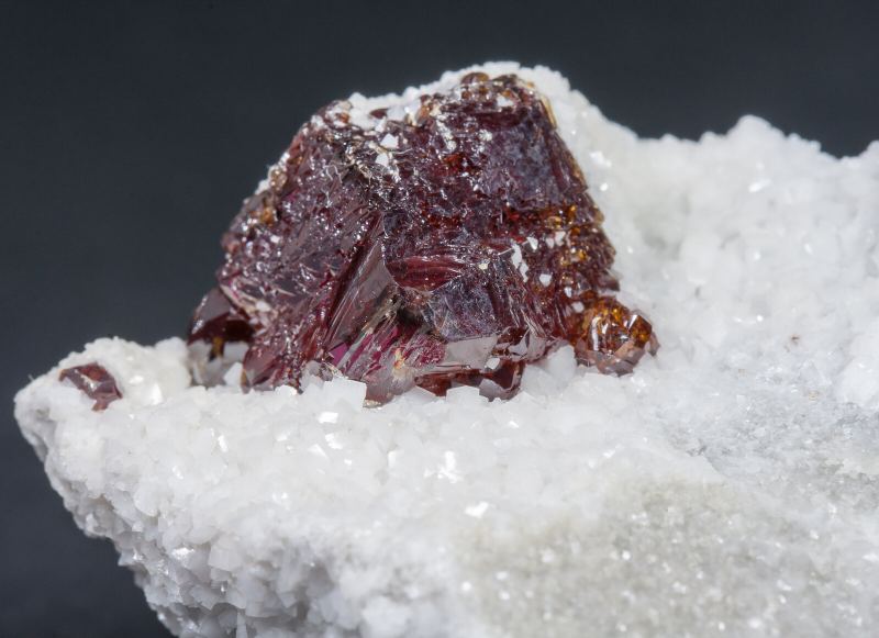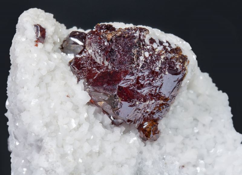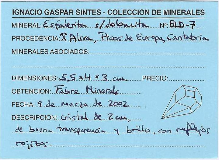 Polycrystalline growth of complex shapes, with defined edges and faces and with fine curvatures, transparent, very lustrous and with a very deep and uniform toasted honey color. On matrix, with white rhombohedral Dolomite crystals. The specimen comes from small artisanal finds in the mine after its closure. There is currently no access to the galleries.The specimen comes from the Ignacio Gaspar Sintes collection (number BLD-7) whose catalogue entry we will send to the buyer.