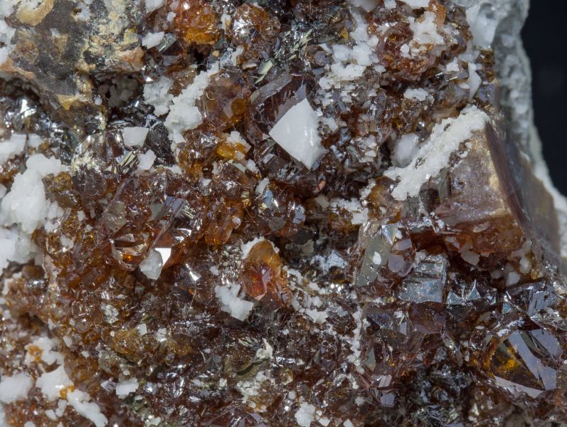 Complex equidimensional crystals, translucent and with a very deep toasted honey color. They are on matrix, with Dolomite. From a Spanish mine, inaccessible for many of years, that is considered as a classic for the Sphalerite.Las Mánforas Mine, Áliva mining area, Camaleño, Comarca Liébana, Cantabria Spain