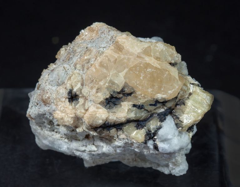Deformed lamellar crystals of Wulfenite (variety chillagite) with a light cream color. On matrix, with crystalline Baryte and Fluorite. A historical classic of Spanish mineralogy.Teresita Mine, Can Donadeu, Sant Fost de Campsentelles, Comarca Vallès Oriental, Barcelona, Catalonia / Catalunya Spain (±1955)