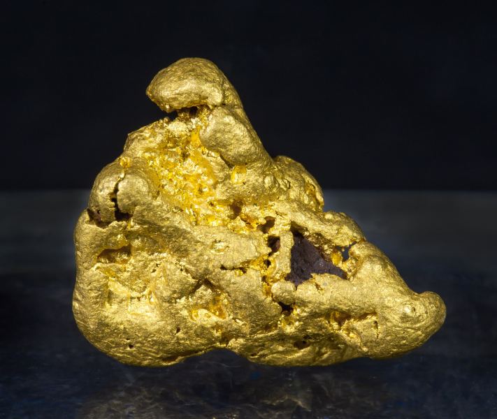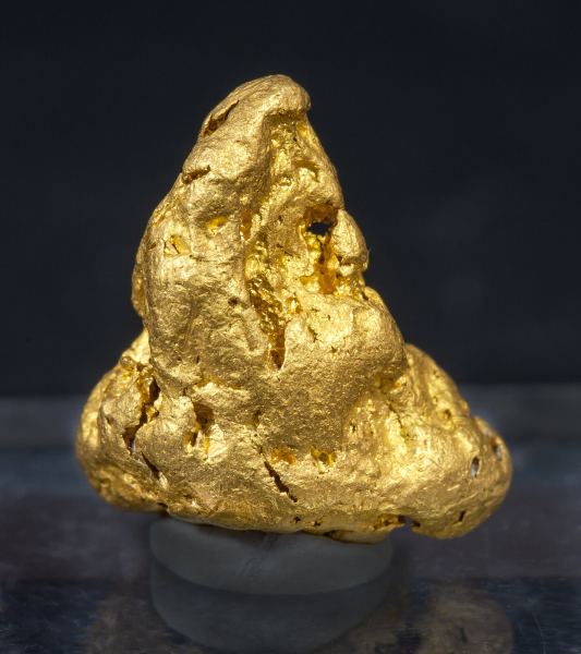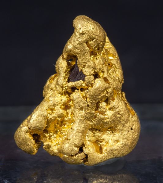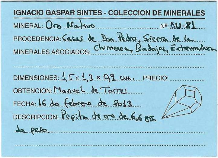 Gold nugget of considerable size for the deposit, lustrous, with cavities and small remnants of matrix.The specimen comes from the Ignacio Gaspar Sintes collection (number AU-81), whose label we will send to the buyer.