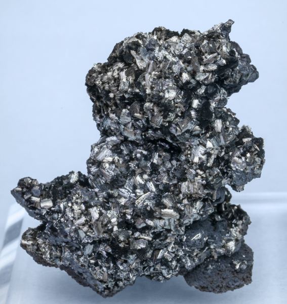 Spheroidal Pyrolusite aggregates on a limonite matrix of bundles of crystals with finely but deeply striated faces. A considerable size and an extraordinarily bright luster contrasting with Romanéchite aggregates, powdery with a deep black color. The sample is of an extraordinary quality for the locality and even for the species.Haití Mine, Cabezo de San Ginés, San Ginés de la Jara, Cartagena, Comarca Campo de Cartagena, Region of Murcia (Murcia) Spain (10/2017)