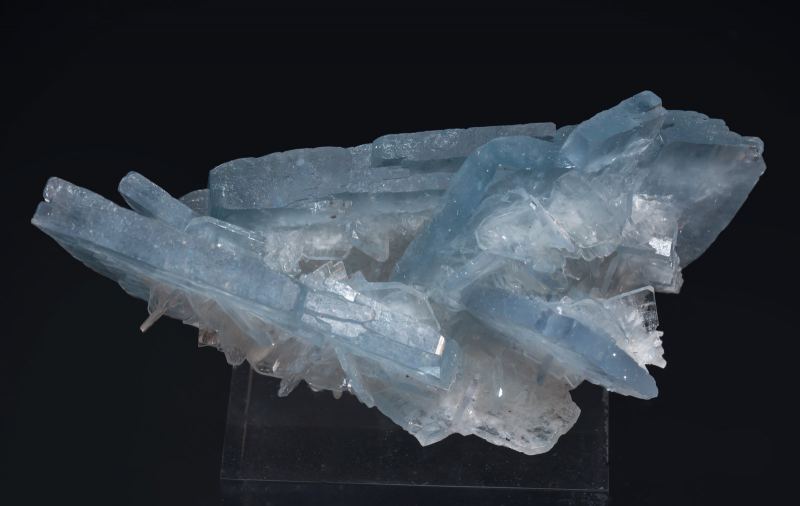 Group of fine tabular Baryte crystals, very sharp, translucent, very lustrous and deep blue. The specimen, a Portman classic of excellent quality, comes from the collection of Miguel David Martínez (No. 331) whose label we will send to the buyer.San Jorge mining group, Sierra Minera de Cartagena-La Unión, Portmán, La Unión, Comarca Campo de Cartagena, Region of Murcia (Murcia) Spain (2015)
