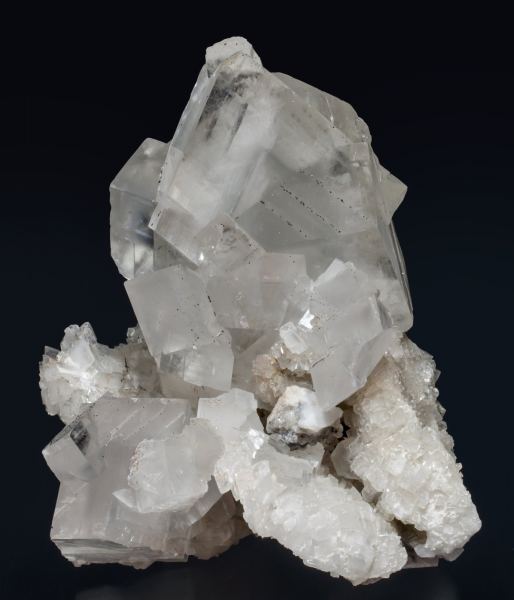 Aerial group of sharp rhombohedral Dolomite crystals that are twinned and bright, between transparent and translucent, with phantom growths and fine alignments of black globular growths, probably Graphite, a Spanish classic.Azcárate Quarry, Eugui, Esteríbar, Comarca Auñamendi, Chartered Community of Navarre (Navarre) Spain