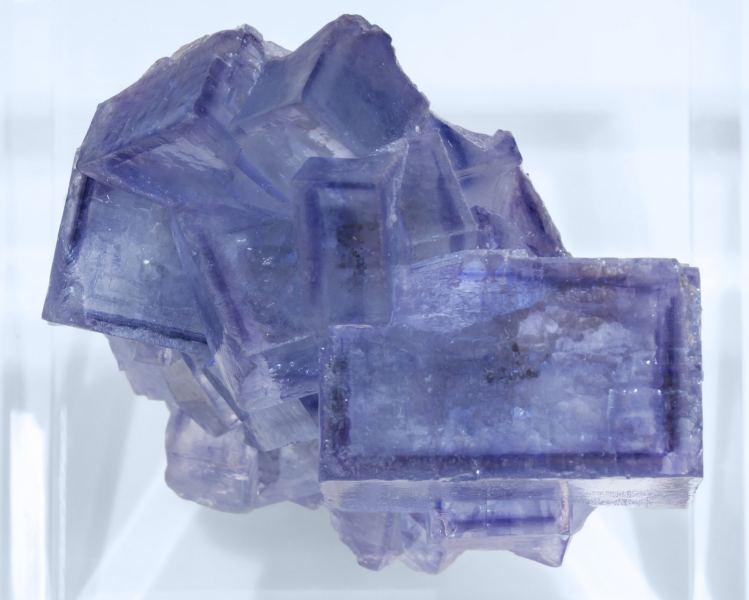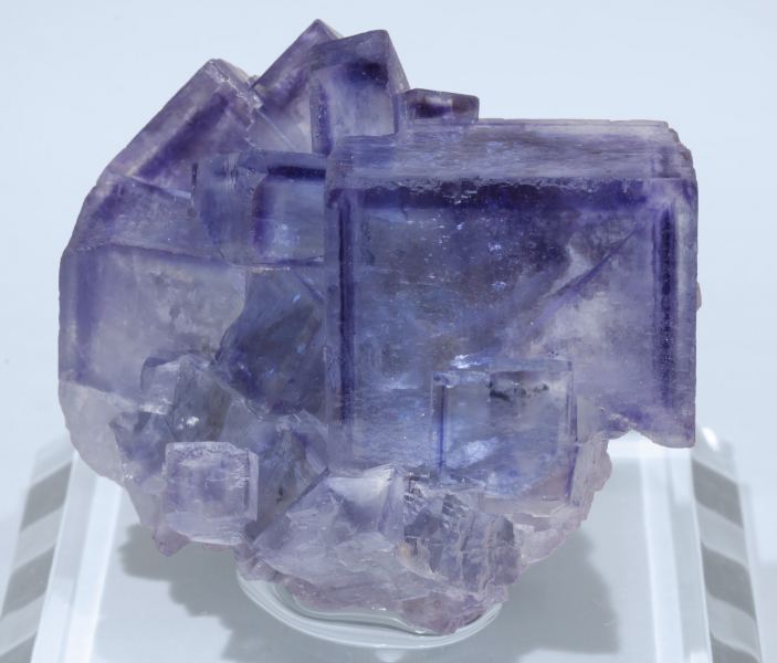 Group of considerably flattened cubic Fluorite crystals. They are transparent and bright and have very well defined geometric color bands. The sample is from a recent find.La Viesca Mine, La Collada mining area, Huergo, Siero, Comarca Oviedo, Principality of Asturias (Asturias) Spain