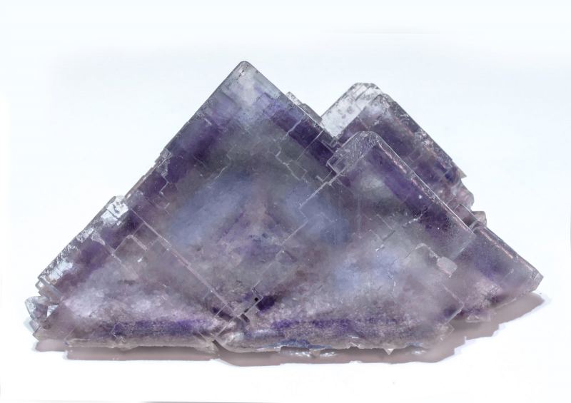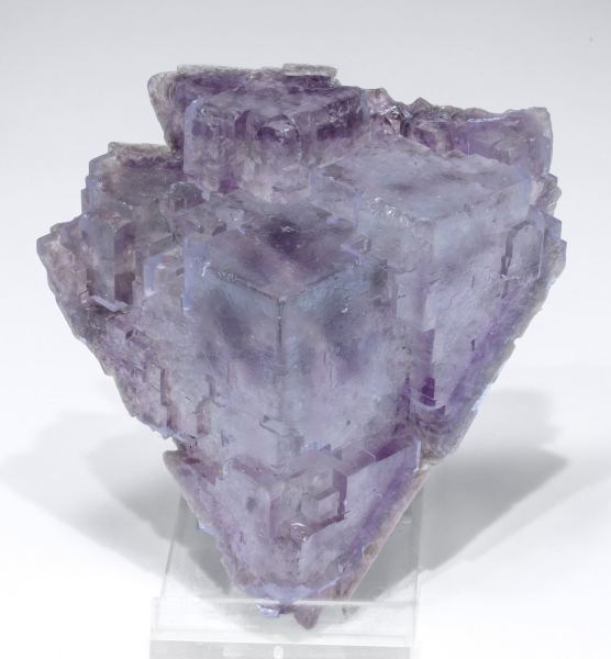 Group of cubic Fluorite crystals with scalenohedral Calcite crystals on the back. The Fluorite crystals are transparent and very lustrous, with a color between lilac and violet and with markedly geometric zoning.This Spanish classic comes from the collection of Miguel David Martínez (number 327), whose label we will send to the buyer.