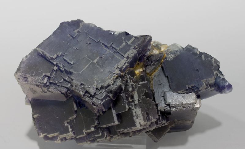 Aggregate of beveled cubic crystals of good size. They are transparent, deep violet and with geometrical zoning of their color. The sample is from the site known as the Geoda Destartalada (Destartalada pocket), one of the first found after the reopening of the mining works at the La Viesca-La Collada area, in 1999.La Viesca Mine, Destartalada pocket, La Collada mining area, Huergo, Siero, Comarca Oviedo, Principality of Asturias (Asturias) Spain (03/1999)
