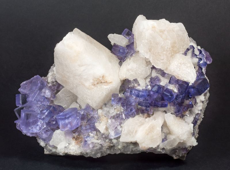 Fluorite with Calcite and Quartz