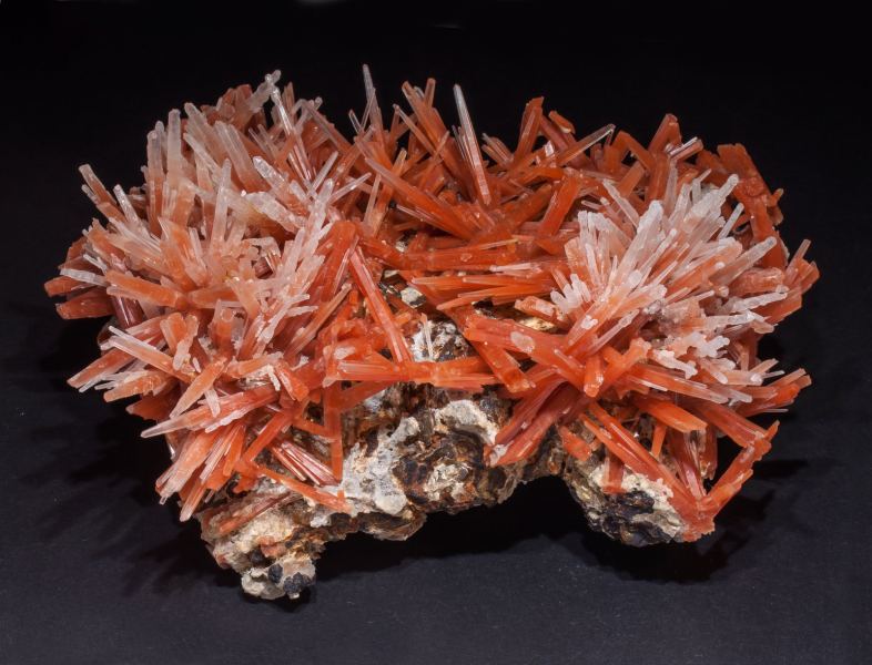 Groups of red Quartz crystals, elongated, many of them doubly terminated, intergrown, and forming very "sculptural" groups - a very different habit from the usual. Finds of this type of Quartz in Dalnegorsk were quite ephemeral and as they appeared, they quickly disappeared too, so it is not easy to get such elegant specimens as this one. The red Quartz is partially covered by a second generation of white Quartz.Second Sovetskii Mine, 230↓, Dalnegorsk, Dalnegorsk Urban District, Primorsky Krai Russia (±1998)