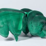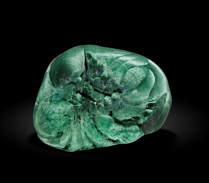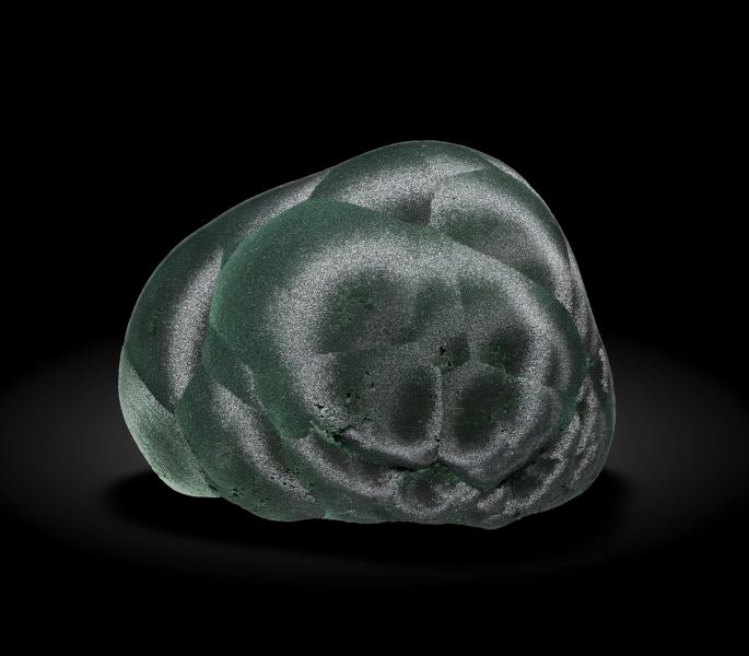 Botryoidal growth of very aesthetic shapes, with bands of different shades of green and an intense silky luster, which gives it a peculiar 'chatoyant' appearance.Shilu Mine, Yangchun, Yangjiang Prefecture, Guangdong Province China(±1995)