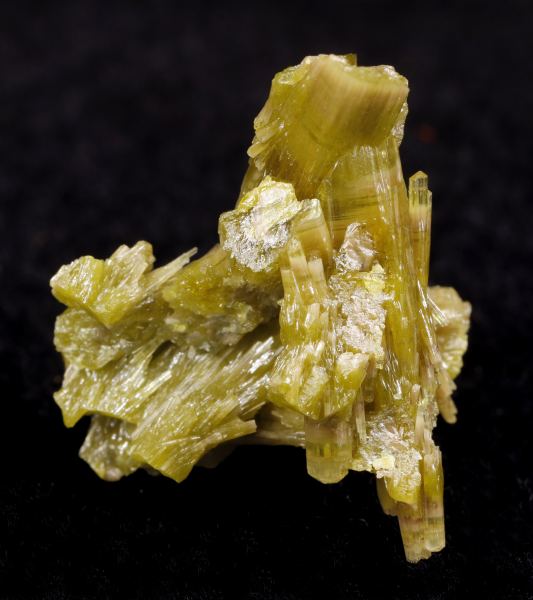 Group of prismatic crystals, many of them fine, with gree-brown tones, bright and on matrix.El Horcajo Mines, El Horcajo, Almodóvar del Campo, Comarca Campo de Calatrava, Ciudad Real, Castilla-La Mancha Spain