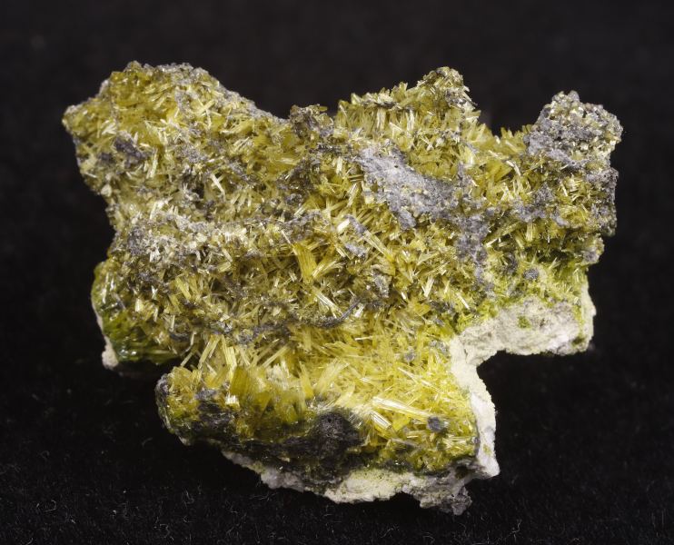 Miniature formed by acicular crystals of green color, on matrix, with very good luster and perfect state of conservation.El Horcajo Mines, El Horcajo, Almodóvar del Campo, Comarca Campo de Calatrava, Ciudad Real, Castilla-La Mancha Spain