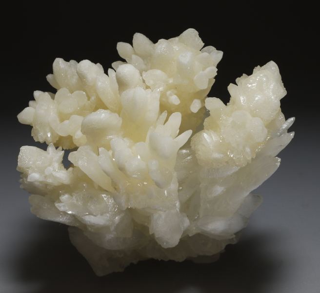 Growth of Calcite crystals, whitish in color with satin luster, with coraloidal morphology at the terminations and scalenohedral crystals at the base.Can Palomeres Mines, Malgrat de Mar, Comarca Maresme, Barcelona, Catalonia / Catalunya Spain(2017)